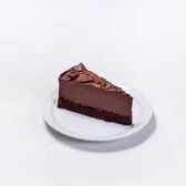 Rich Belgian chocolate mousse on top of a chocolate sponge cake, finished with chocolate shavings and a sweet strawberry puree. (14 slices per cake)