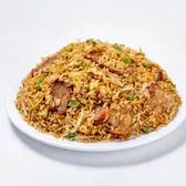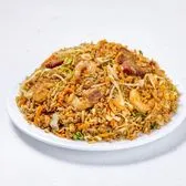 Rice stir fried with shrimp, chicken, seasoned pork, egg, yellow onion, green onion, sprouts and soy sauce.