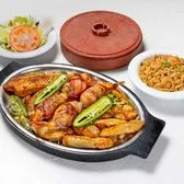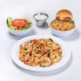 Grilled Chicken, 4 Bacon Wrapped Shrimp, and 1 Tilapia Fillet. Served with grilled jalapeño, fresh mixed vegetables and tortillas. Choice of 2 sides.