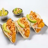 Grilled or fried fish fillets served with a Baja sauce, avocado and slaw.