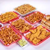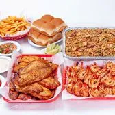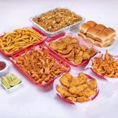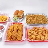 Serves up to 12 people 70 fried medium shrimp, 18 fried fish fillets, special fried rice, french fries, 12 buns Holiday Packs w/ 2x FREE 2L Soda