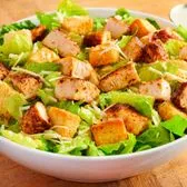 Fresh Romaine, blackened chicken breast, shreaded parmesan cheese, homestyle croutons, and a creamy Caesar dressing. 630cal/svg 1svg