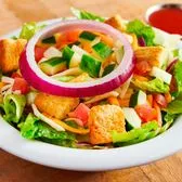Lettuce, tomato, onion, cucumber, cheese, and croutons. 270 cal/svg 1svg
