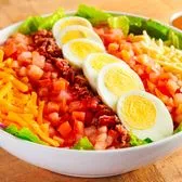 Bacon bits, Monterey Jack, Cheddar, tomatoes, and slicced eggs. It's the salad you've grown to know and love. 425 cal/svg 1svg