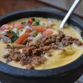 Queso with taco beef & pico de gallo. Comes with chips & salsa