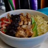 Layered salad with rice, choice of greens, black beans, jack cheese, pico, avocado & choice of protein. Comes with a side of dressing