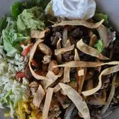 Mixed greens, combo beef & chicken fajita, guacamole, sour cream, pico, cheese and tortilla strips. Tossed with jalapeño ranch