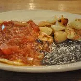 1 grilled potato, onion & poblano taco on corn tortillas. Topped with lettuce & tomatoes. Served with black beans