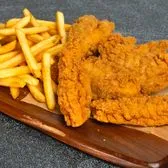 Three or five crispy chicken strips made with all-natural chicken & a side of fries.