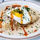 Poblano and guajillo sausage gravy, tomato jam, egg, house hot sauce, chives