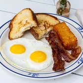 2 Eggs, homemade hash browns, choice of protein, and toast