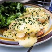 Wild-caught salmon pastrami, Texas tarragon, chives, hollandaise, grilled English muffin, fermented black pepper. Served with fresh mixed greens salad | *GF English muffin available