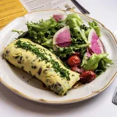 Soft eggs, chives, smoked Maldon. Served with fresh mixed greens salad, and blistered heirloom tomatoes [GF] [V] | Add mushrooms, Gruyère, onions $/each