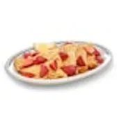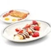 Choose your crepe flavor, served with 2 eggs* your way, 2 custom-cured hickory-smoked bacon strips or 2 pork sausage links & golden hash browns.