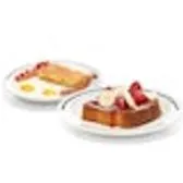 Two slices of thick and fluffy bread dipped & griddled in our new vanilla, cinnamon French toast batter & topped with strawberries & bananas.