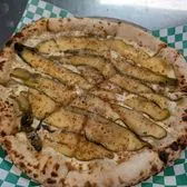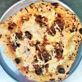 12" pie with Burrata, Hot, white bbq sauce, Deconstructed Nashville Hot Smoked Chicken, Pickled onions (Contains breadcrumbs!)
