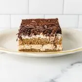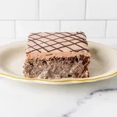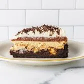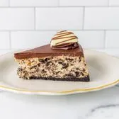 A soft brownie crust surrounds our rich, mocha flavored mousse. To make it even more chocolaty, we pour dark chocolate ganache over the top