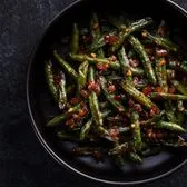 Wok-charred Brussels sprouts, chili pods, peanuts, Kung Pao sauce.