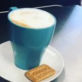 Equal parts espresso, steamed milk & foam- enjoy here- served hot