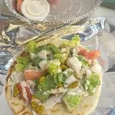Tandoori-flavored savory lamb spread on pita and tossed with tomatoes, onion, white sauce, and cheesy mozzarella