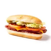 All-beef hot dog, split and grilled lengthwise for a caramelized exterior, American-style cheese on top, a layer of applewood smoked bacon and any of your favorite toppings.