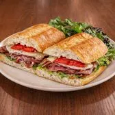 Your choice of ham or turkey and cheddar, Swiss or provolone with tomato, green leaf lettuce and mayonnaise on a French baguette. Available as half or whole. Served cold or toasted. Served with your choice of one signature side.