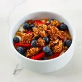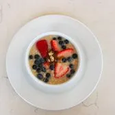 house-made oatmeal served with strawberries, blueberries; topped with brown sugar