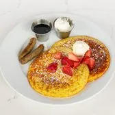 3 house-made fluffy Greek yogurt pancakes topped with butter & served with pure maple syrup