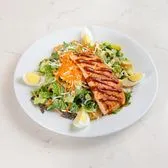 mixed greens, romaine, shaved carrots, croutons, boiled eggs, & queso fresco; tossed with our mango ranch dressing & topped with chipotle-honey seared salmon