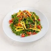 kale tossed in our avocado lemon dressing, tomatoes, red onions, mango, carrots & strawberries; topped with roasted pumpkin seeds