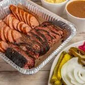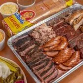 1 pound each of Brisket, Pulled Pork, Chicken, Sausage, Ribs, 4 pints of Sides, 1 Loaf of Bread