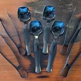 The set includes 4 heavy-duty plastic serving spoons and 4 heavy- duty tongs