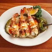 Fire-grilled shrimp, wrapped in hickory smoked bacon and stuffed with fresh jalapeño. Served on top of an Anaheim pepper with Cholula, Queso Fresco and Chile con Queso.