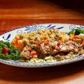 Grilled chicken with a savory fajita glaze, placed on top of a bed of cilantro lime rice and green chile sauce. Served with a cheese enchilada and seasonal vegetables.