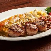 Three fire-grilled pork tenderloin medallions, wrapped in hickory smoked bacon. Served with your choice of two hand-rolled enchiladas, Papas con Chile™ and charro beans.