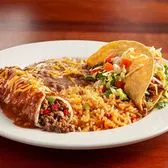 Choose your favorite hand-rolled enchilada and crispy taco filled with your choice of meat. Served with refried beans and your choice of Papas con Chile™ or Mexican rice.