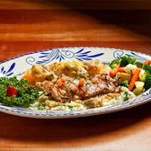 Grilled chicken with a savory fajita glaze, cilantro lime rice with green chile sauce, seasonal vegetables, hand-rolled cheese enchilada topped with our signature green chile sauce.