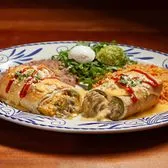 A lightly fried tortilla filled with braised pork tenderloin simmered in our signature green chile sauce. Served with refried beans and Mexican rice.