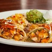 Fire-grilled marinated fajita steak* with cheeses and Anaheim chiles, in a lightly fried flour tortilla. Topped with chile con queso or ranchera sauce. Served with sour cream, guacamole, refried beans and your choice of Papas con Chile™ or Mexican rice.