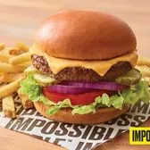 A delicious Impossible® Burger Made from Plants for those who crave meat, topped with two slices of American cheese. Served with lettuce, tomato, onion, and pickles on a Brioche bun. Served with classic fries.