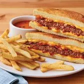 Experience a gooey cheese pull with our juicy, all-beef patty, stacked with four slices of American cheese and our tangy bacon sauce on toasted Potato bread. Served with tomato basil soup for dipping and classic fries.