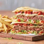 Part burger, part quesadilla, all taste. This original burger creation comes piled high with two slices of Pepper Jack cheese, our signature Mexi-ranch sauce, crispy Applewood-smoked bacon, house-made Pico de Gallo and shredded lettuce in a crisp, warm Cheddar quesadilla. Served with classic fries.