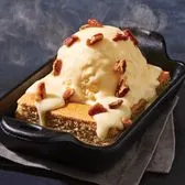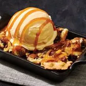 Our famous blondie is sizzled and drizzled with maple cream cheese sauce, then topped with vanilla ice cream and candied pecans.