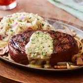 Grilled 8 oz. USDA Select top sirloin* is jazzed up with Cajun spices in buttery garlic and parsley, served sizzling with sautéed mushrooms & onions and garlic mashed potatoes.