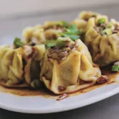 A delicate, savory bite sized dumpling that is filled with pork, shrimp, carrots, mushroom, cilantro, green onion, and garlic served with our in house tangy sauce!