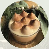 Thai tea cheesecake mousse, black sesame butter crust, white miso chocolate ganache, campfire-toasted s’more meringue.