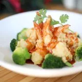 A delectable, savory, Tamarind sauce paired with crispy tempura shrimp, carrots, snap peas & broccoli