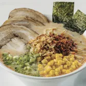 A timeless Tokyo classic — springy noodles in a savory soy sauce broth, topped with chashu pork, corn, fermented bamboo, nori, green onion, crispy onion, and Chef Nikky‘s Chili Crisp
