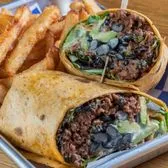Impossible Burger, Sliced Fresh Avocado, Field Greens, Black Bean & Corn Salsa, Vegan Ranch In A Sun-Dried Tomato Wrap