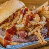 Sweet And Tangy BBQ Sauce, Fried Onions, Diced Pickles, Cheddar Cheese And Bacon